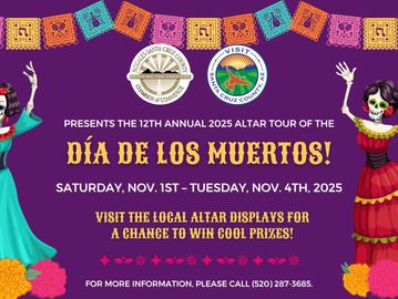 Join the Nogales-Santa Cruz County Chamber of Commerce for the 12th Annual Día de los Muertos Altar Tour, a beautiful self-guided journey through ofrendas across Nogales-Santa Cruz County, Arizona.