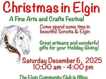 The Elgin Community Club invites the public to celebrate the holiday season at Christmas in Elgin: A Fine Arts and Crafts Festival on Saturday, December 6, 2025, from 10:00 a.m. to 4:00 p.m. Visitors are encouraged to spend the day in the beautiful Sonoita and Elgin area while enjoying an artisan showcase filled with unique gifts perfect for holiday giving.