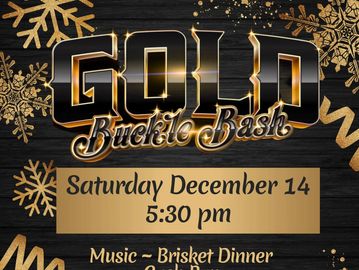 Get ready for an unforgettable evening at the Gold Buckle Bash on Saturday, December 13th at 5:30 PM! Enjoy live music, a delicious brisket dinner, and a cash bar while watching the 10th round of the National Finals Rodeo.