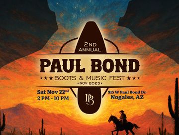 Experience the Paul Bond Boots & Music Festival — Where the West Comes Alive! Enjoy live country music, dancing horses, food trucks, bonfires, and family fun on the ranch.